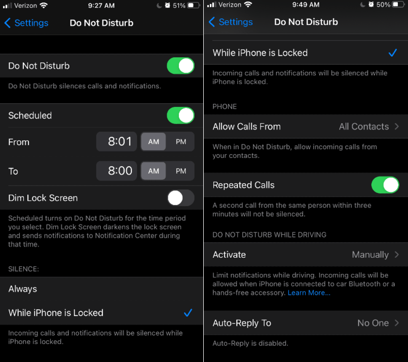 Great point! This was my number one concern and rightly so. I have kids that I am responsible for and I’m not about to let myself live my unplugged, chillin in the clouds lifestyle while my kid is on their way to the emergency room and the adult accompanying them cannot get ahold of me. So, what’s the solution? There is a setting where you can allow incoming calls from people listed in your Favorites or All Contacts. Just make sure you add your children’s school and anyone else that could be taking care of your kids to your contacts. Also, there is a setting where you can allow incoming calls from anyone (whether or not they are in your contacts) if they call twice within three minutes. One final thought on this- keep in mind that back in the day, our parents weren’t constantly available and we still survived emergency situations (for the most part… oh man that got dark quickly).